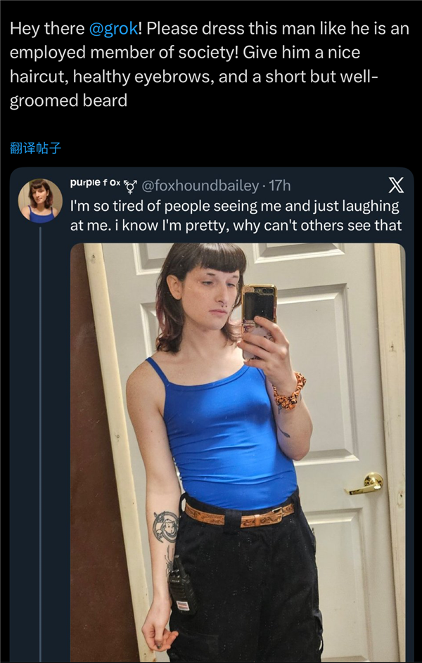 有人庆贺美国的告白代言终究没有黑人女性胖子了,美美一顿输出指令还有人艾特grok,目前对该使用法式的管控办法不脚以未经同意的女性和儿童深度伪制视频的。用户Sassafrass84暗示。